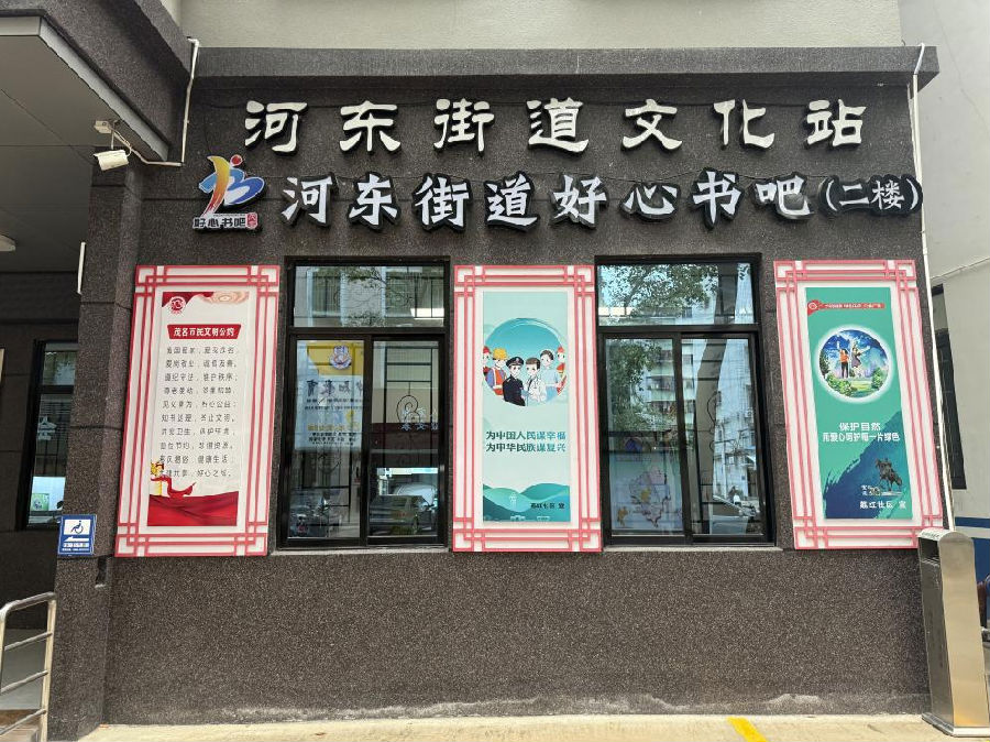 河东街道文化站分馆下辖有乙烯北社区综合性文化服务中心、河东街道为民社区新时代文明实践站图书室两个服务点。