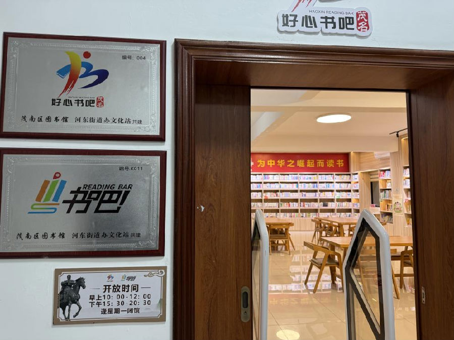 河东街道好心书吧是2021年建成使用的综合性标准化书吧,书吧坐落于茂南区河东街道荔红社区党群服务中心二楼,毗邻市文化广场及市民政局。好心书吧配置了藏书室、阅览区、电子阅览室等多个功能室。其中建筑面积约220平方米,设施优良,环境休闲、时尚,配置了10000册图书。。
